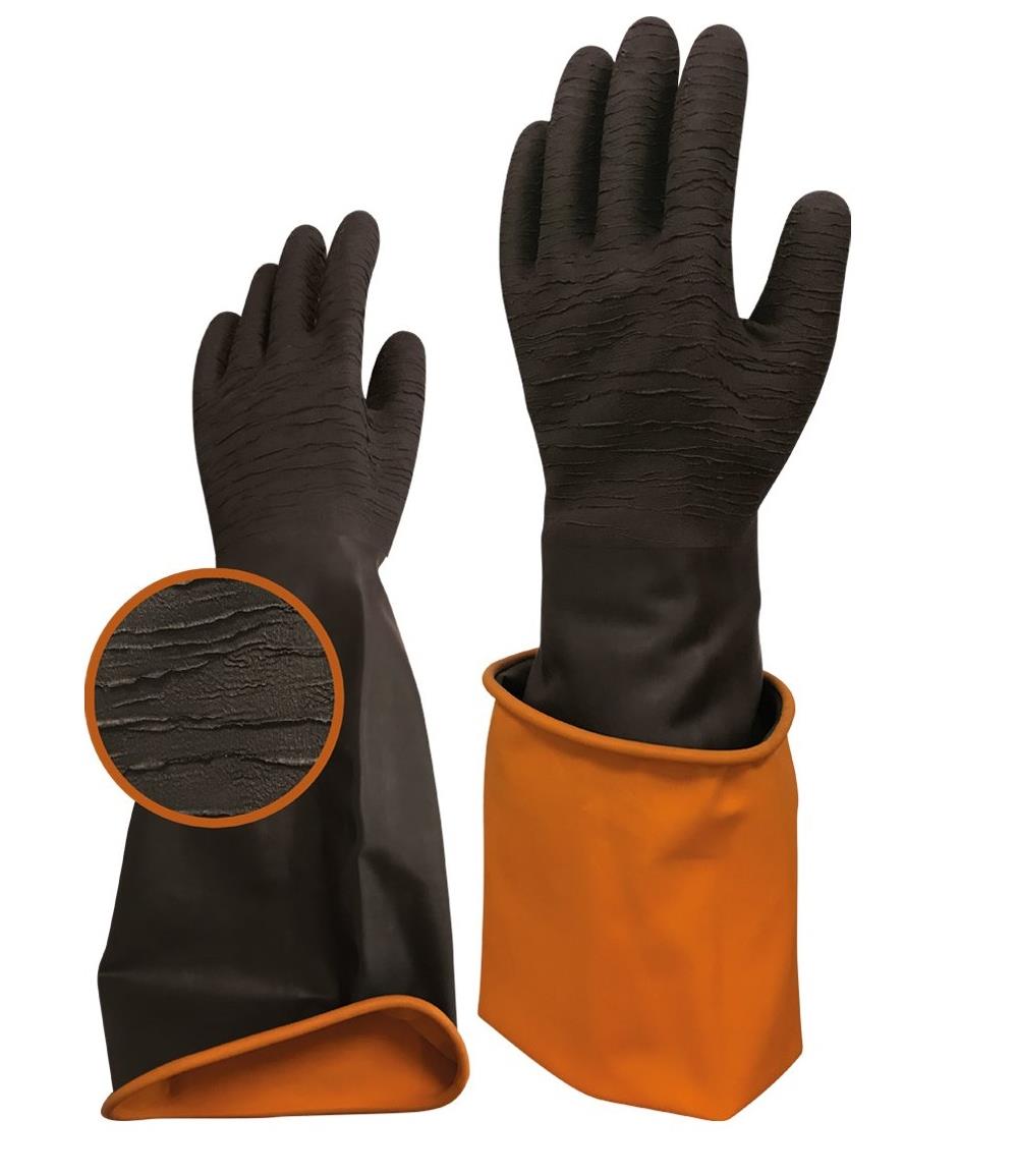 Astar Malzemesi: Turuncu Kauçuk Kaplama Malzemesi: Siyah Kauçuk Bileklik Modeli: Kıvrılmış + Uzun Renk: Siyah Kalınlık: 0,70mm el kısmı kalınlığı Tanım: Bu ürünler karşılanan standartlara uygun olarak orta dereceli tehlikelere karşı koruma sağlayan ve kullanıcıyı koruma amacıyla üretilmiş ürünlerdir. Aynı zamanda, sonuçları geri dönüşü olmayan vücut yaralanmalarına neden olmayabilecek minimal risk faktörlerine karşı da koruma sağlar. Özellikle yoğun yağlı ortamlarda çalışmak için tasarlanmıştır.