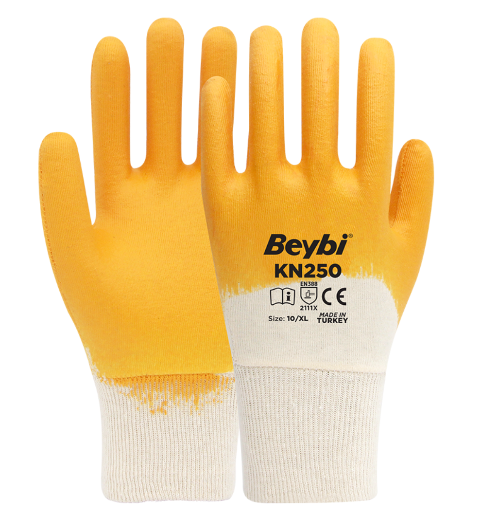 Örgü bilekliği ve özel kalıbı sayesinde eli daha iyi kavrar ve konforlu kullanım sağlar. Pamuk astarlı dokumasıyla elinizin hava almasını sağlar. Gıda ile temasa uygundur. 9 Beden ve 10 Beden için üretim yapılmaktadır. Müşteri talebi doğrultusunda bütün ebatlar (7’den 11’e) üretilebilmektedir.